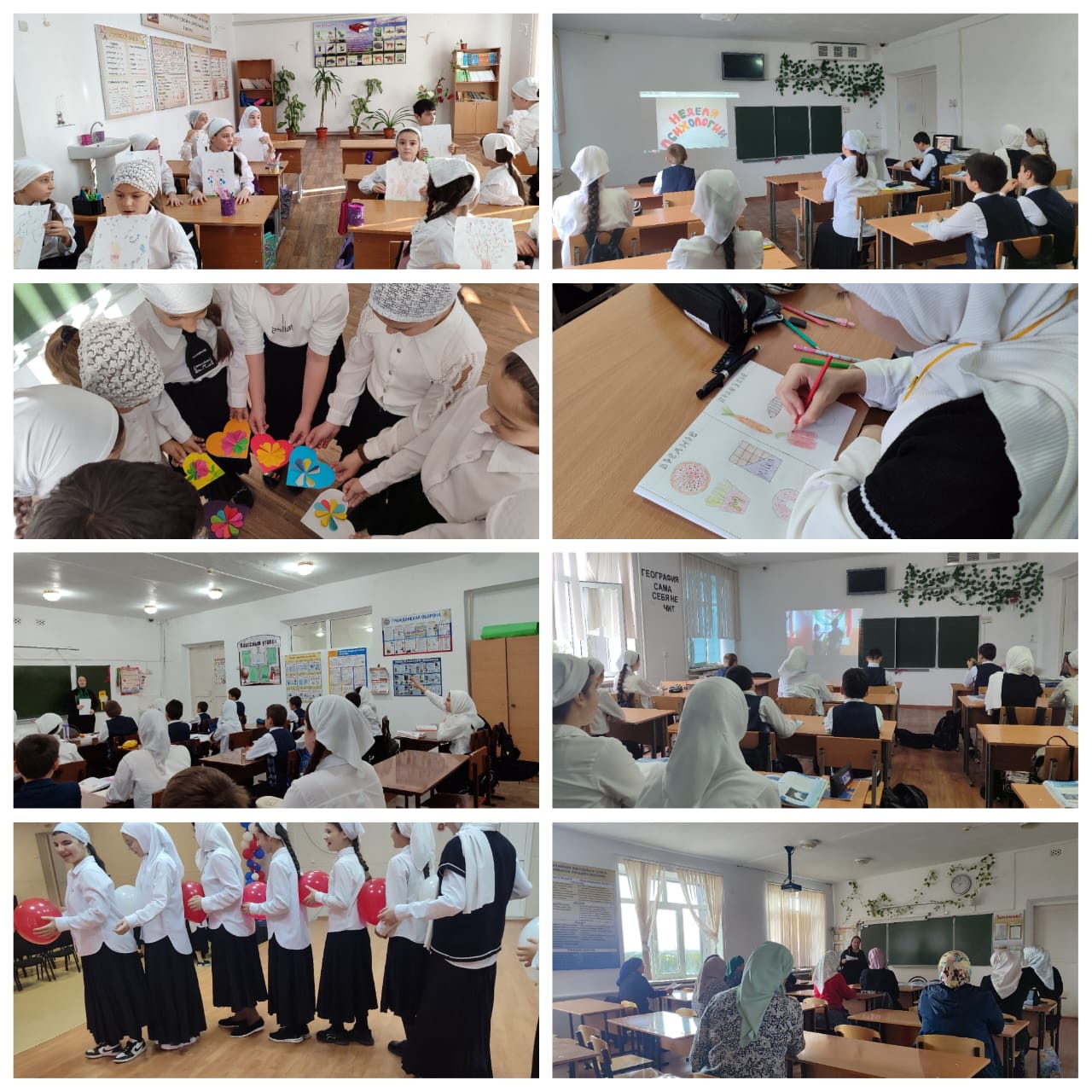 Ставшая уже традиционной. Неделя психологии является специально организованным комплексом мероприятий, который зарекомендовал себя в качестве эффективного инструмента создания психологически безопасного и развивающего образовательного пространства. Такое пространство формируется благодаря вовлечению всех участников образовательных отношений в деятельность, позволяющую лучше узнать самого себя, понять окружающих и научиться управлять своим эмоциональным состоянием.В рамках Недели психологии организовывалась полезная занятость детей и взрослых, проводились различные мероприятия, которые способствовали поддержанию благоприятного психологического климата в детском коллективе, психологически безопасной образовательной среды. Были использованы разные формы проведения: психологические акции, конкурсы рисунков, тренинги, игровые занятия, классные часы