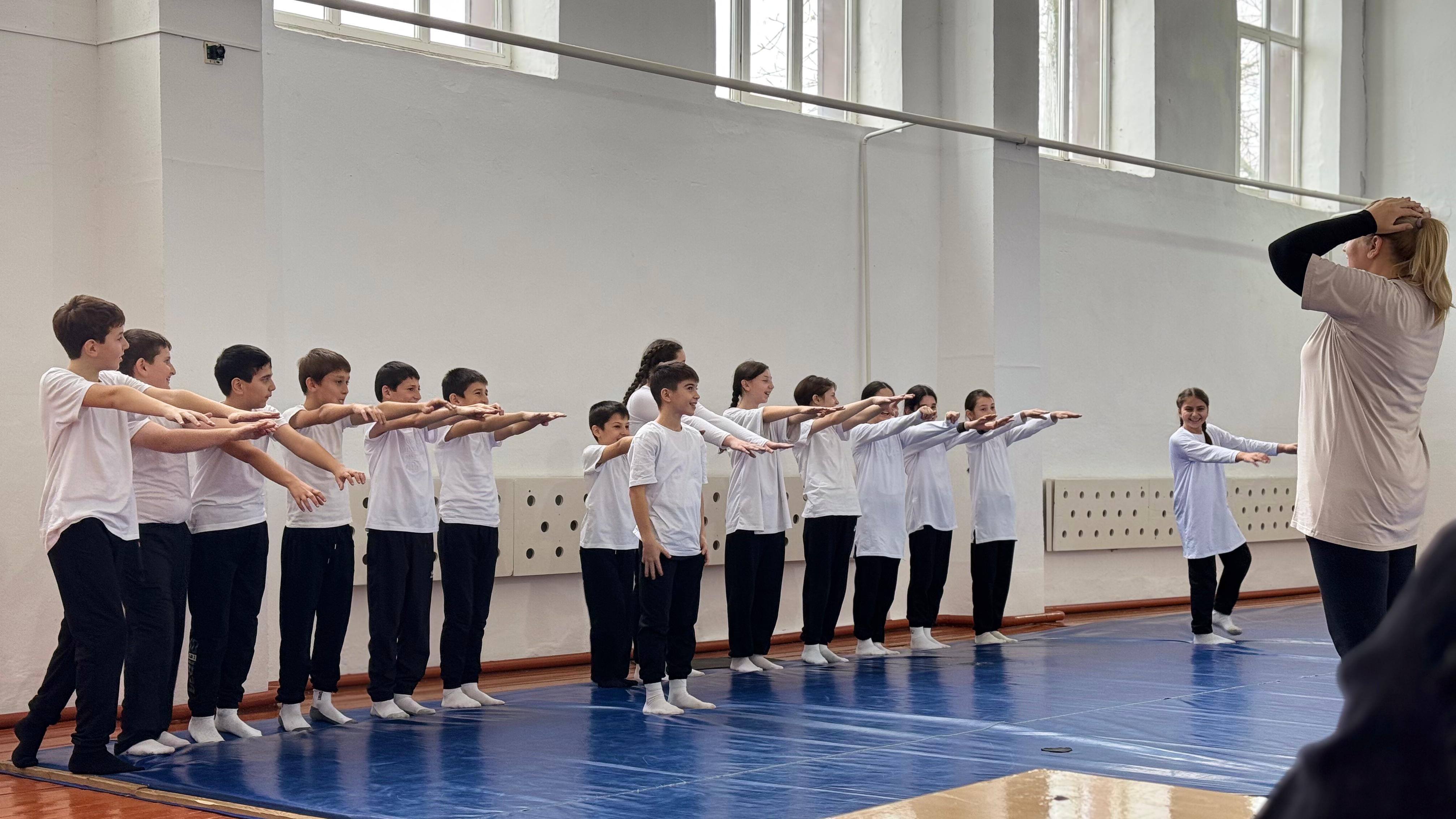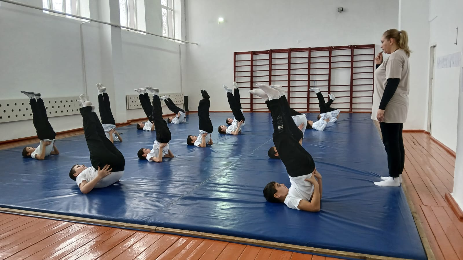 Крымова М.А. провела открытый урок в 5 классе на тему: "Гимнастика. Совершенствование акробатический упражнений".