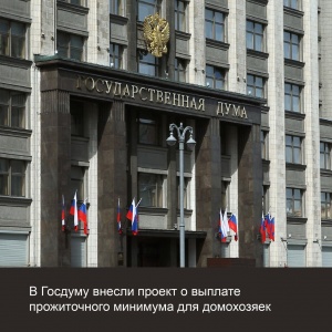 28.05.2025В Госдуму внесён законопроект о ежемесячной выплате регионального прожиточного минимума для домохозяек.
