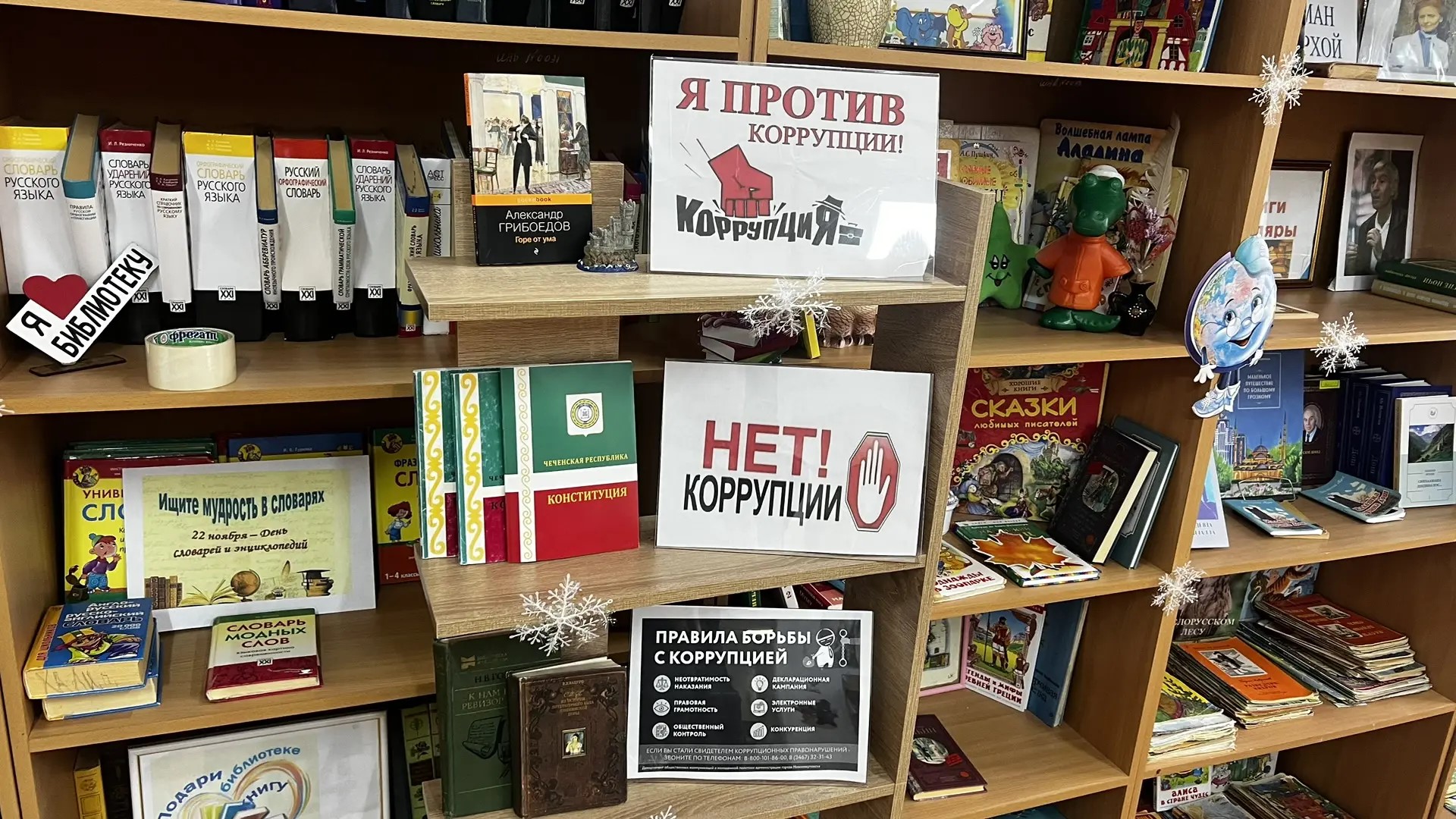 17.12.2025В МБОУ «Наурская СОШ 2» в библиотеке была организована книжная выставка, «Вместе против коррупции!», приуроченная Международному дню борьбы с коррупцией.