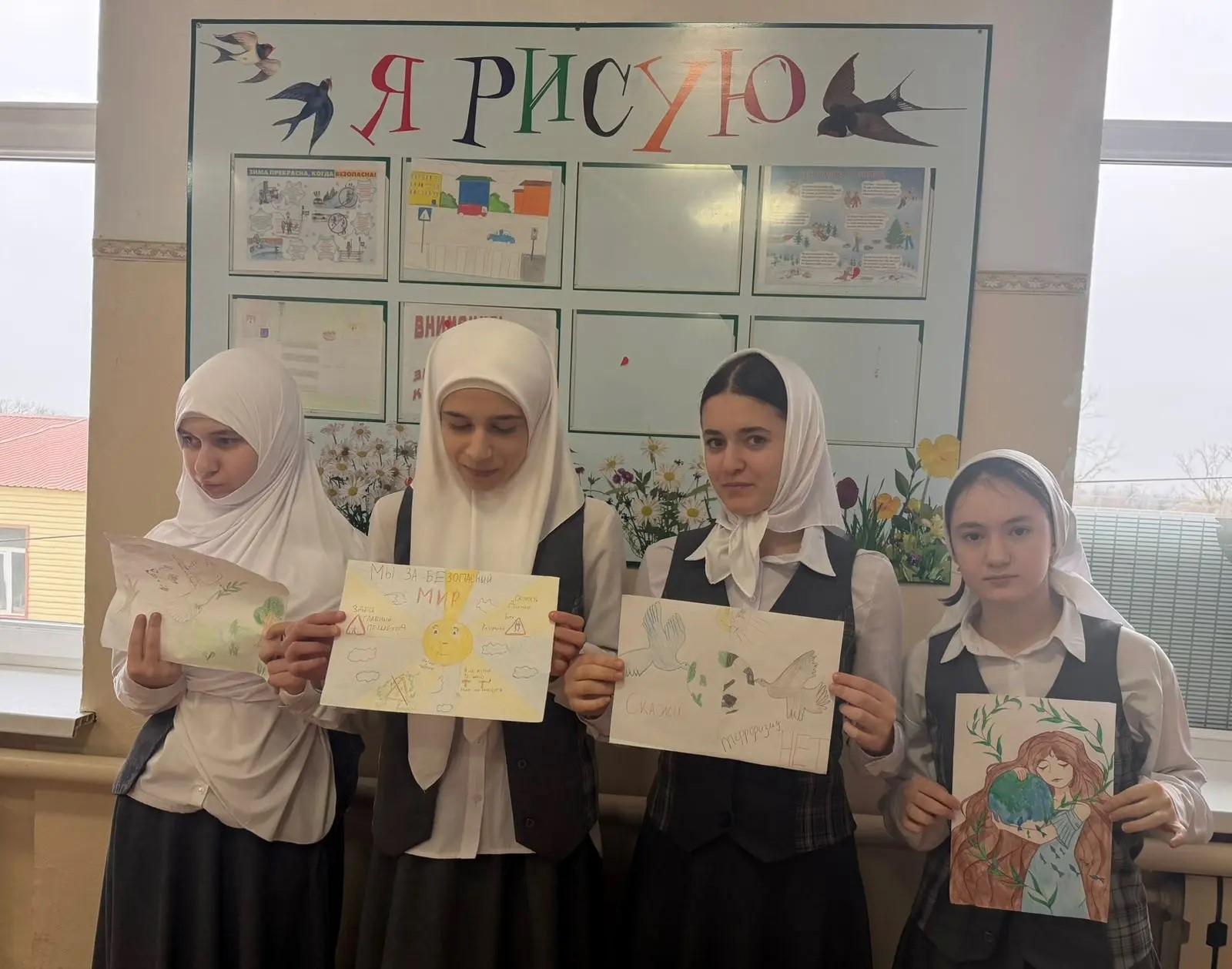 Советник по воспитанию провела трогательнаю акцию "Мы за мир"! Ученики 8Б класса с душой создали яркие рисунки, полные надежды и единства. Эти работы — их послание о доброте, толерантности и желании жить в гармонии. Рисунки выставлены в холле, чтобы вдохновлять всех учащихся